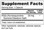 Wellness Resources® PQQ contains 20mg of high quality PQQ per capsule. Doses of 20mg per day have been shown to promote youthful mitochondrial function.*