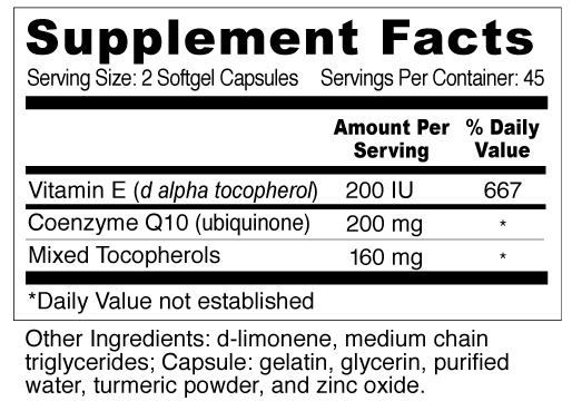 Super CoQ10™ (the product on this page) contains ubiquinone Q10 suspended in a unique fat-soluble mixture of natural vitamin E and d-Limonene oil, which enhances the uptake of Q10 into the blood by as much as 270 percent, compared to powder Q10.*
